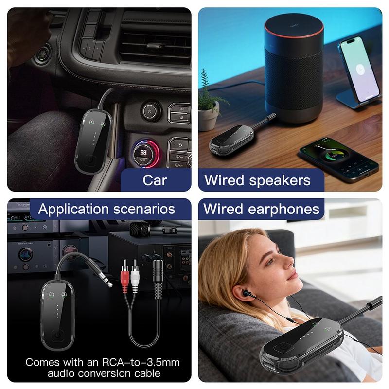 The built-in 250mAh battery provides long operating time, while Type-C charging helps keep recharging simple and modern. Compact and easy to carry, this 2-in-1 Bluetooth audio adapter is ideal for home entertainment, travel, car audio, office use, and upgrading older sound equipment without replacing it.
