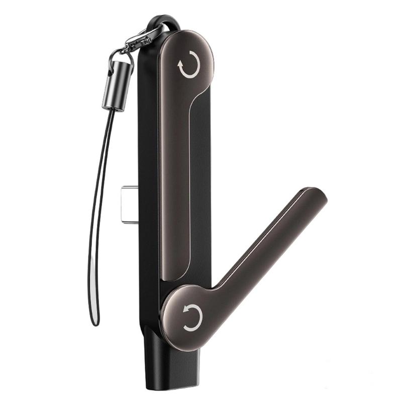 - 2-in-1 design that combines a USB-C adapter with a foldable phone stand