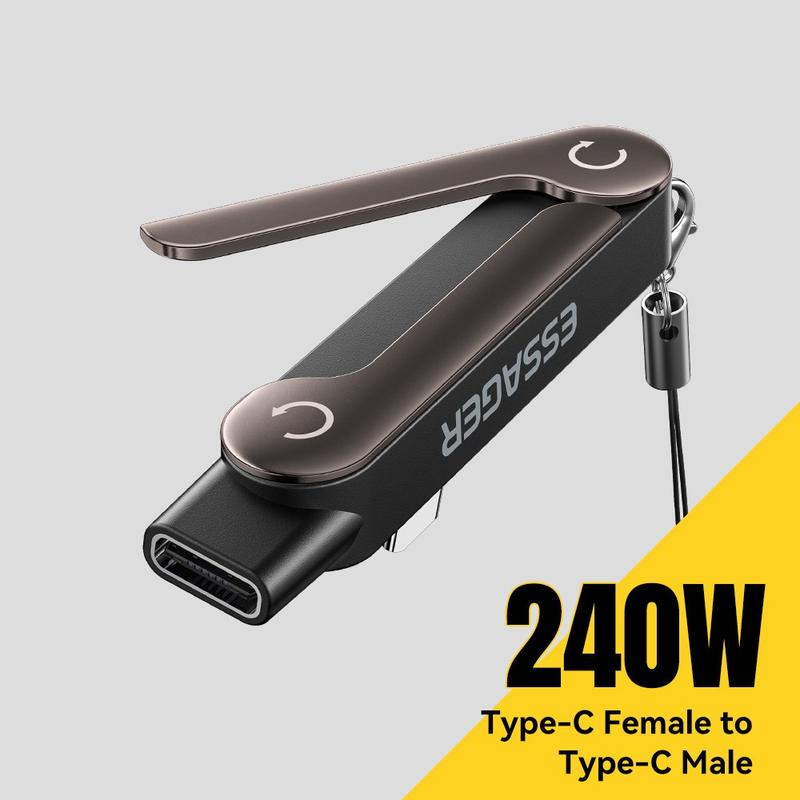 • Essager L-Shape USB-C Female to USB-C Male Adapter with Foldable Stand, 240W Fast Charging, 40Gbps