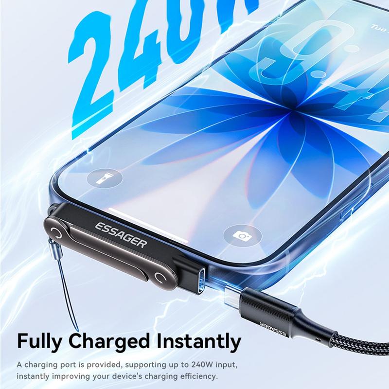 The ESSAGER USB-C female to USB-C male adapter is a smart 2-in-1 accessory that combines high-speed connectivity with a foldable phone stand. Designed for everyday convenience, it supports up to 240W charging and 40Gbps data transfer while the 90 L-shape design helps create a more comfortable cable angle during use. Compact, lightweight and easy to carry, it is a practical solution for work, travel and daily charging setups.