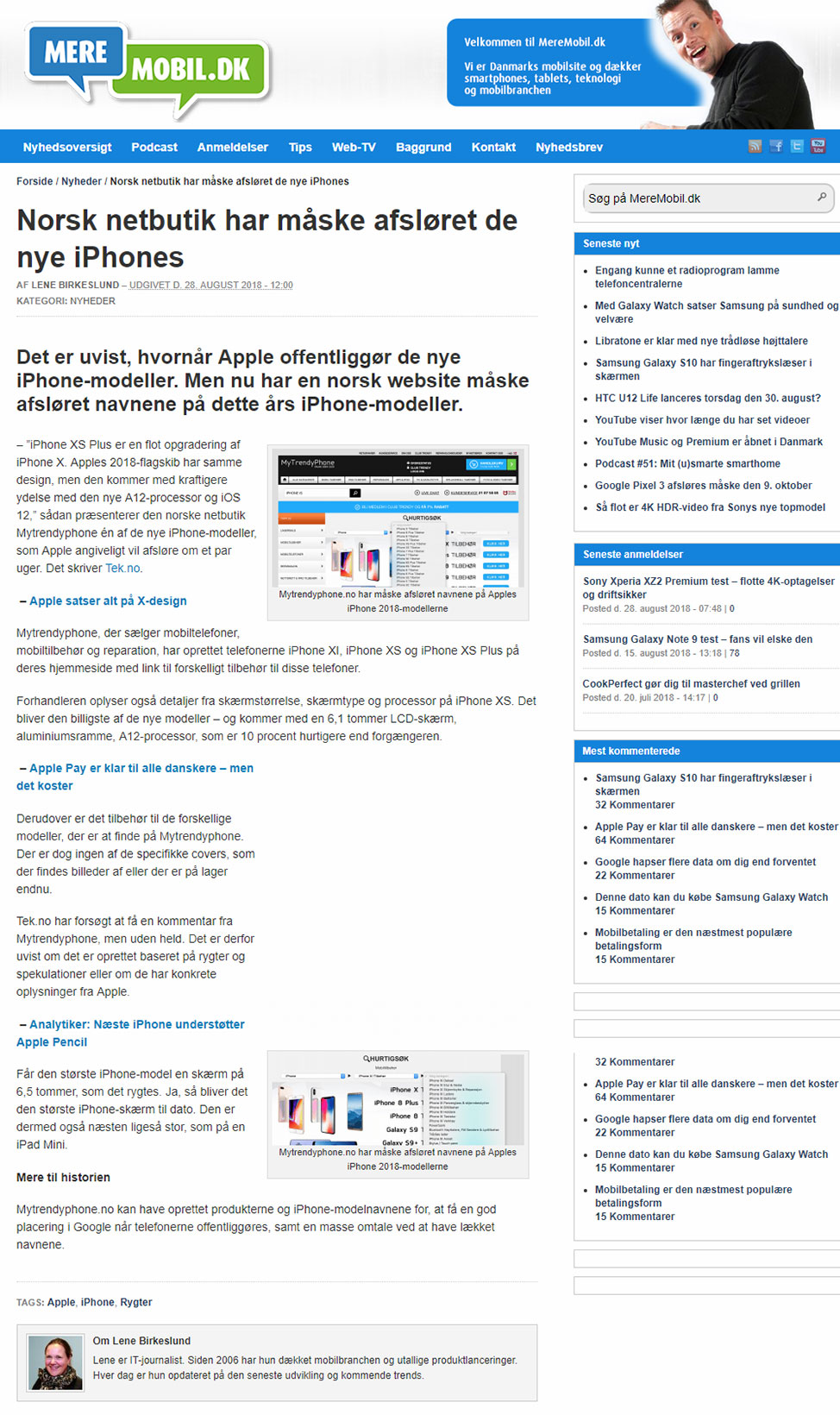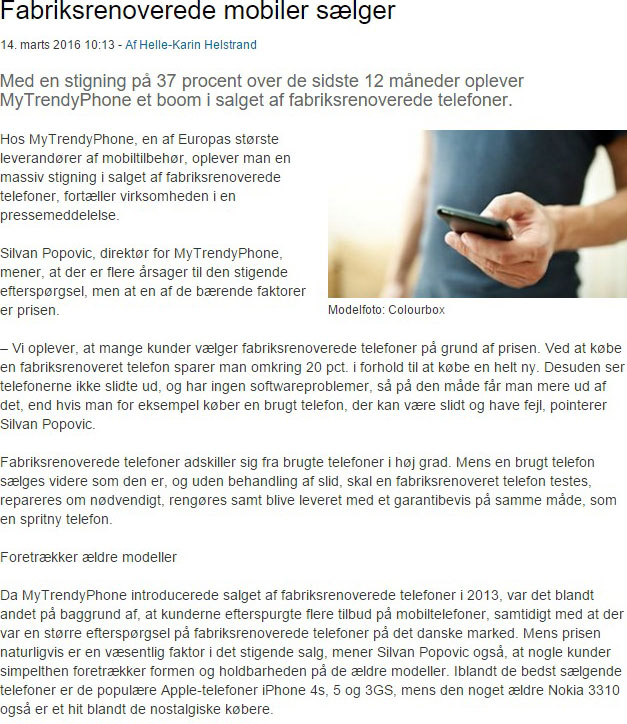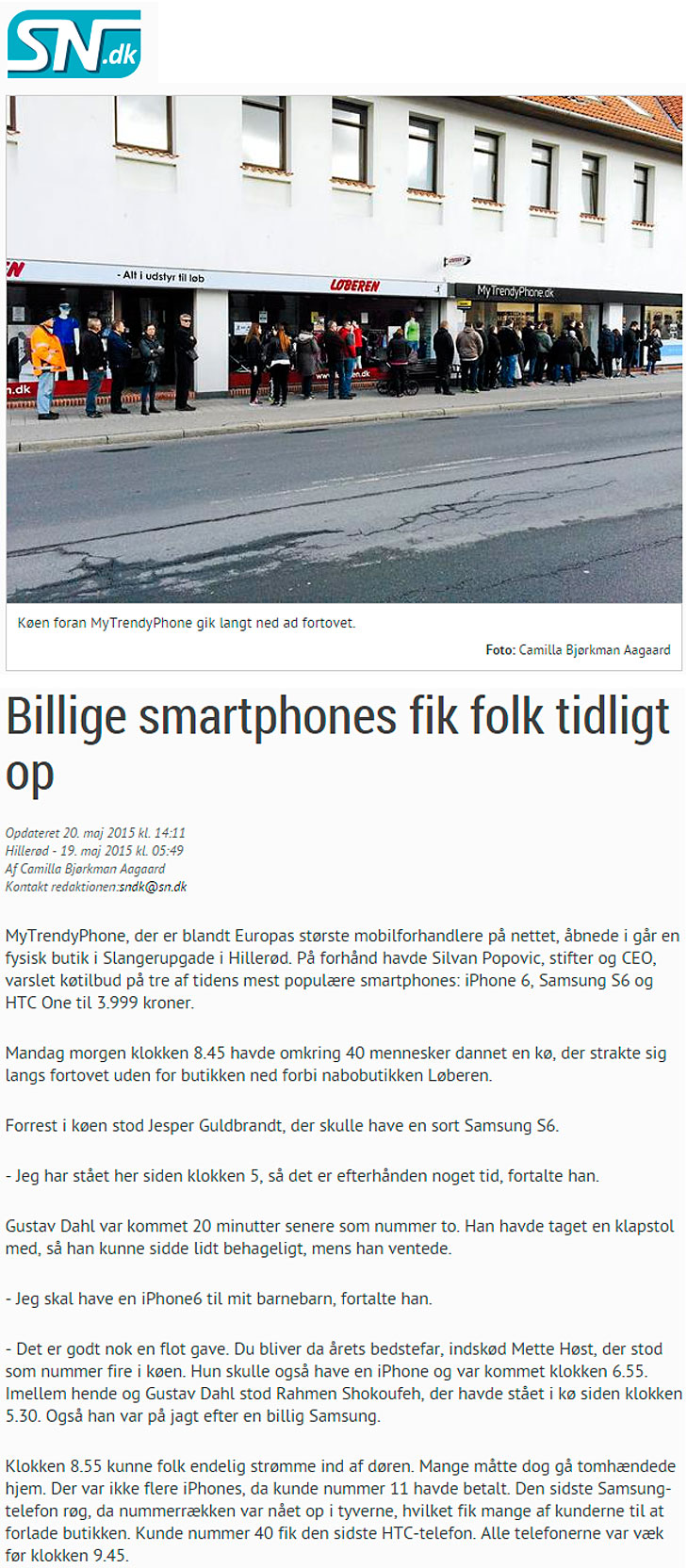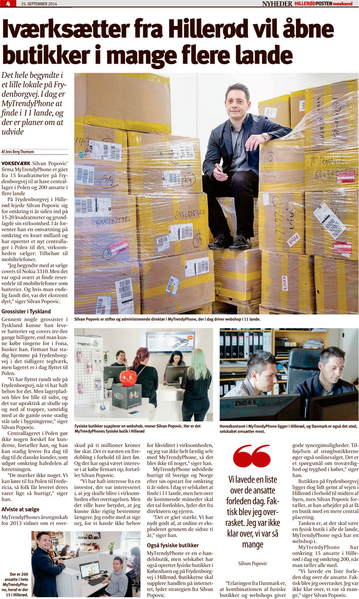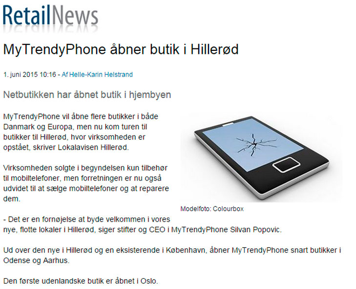 MyTrendyPhone blev etableret i 2003 og har nu et produktsortiment på mere end 100.000 forskellige produkter samt et team på over 300 medarbejdere i hele Europa. Det gør at MyTrendyPhone nu er Danmarks største forhandler af mobiltilbehør.