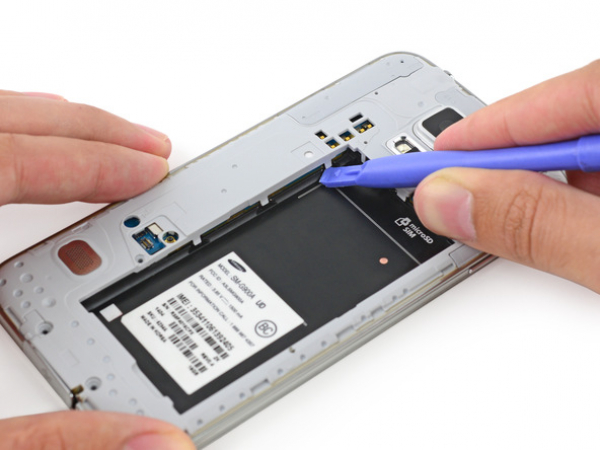 Push a plastic opening tool or one of your fingernails into the opening to the left of the rear-facing camera.