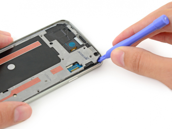 Slide the pick around your phone's corner gently, and stop before the speaker grille, located at the top of the phone.