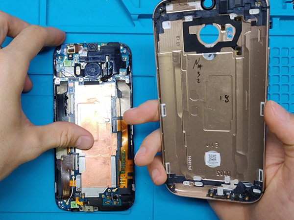 Remove the SIM card tray assembly from the HTC One M8.
