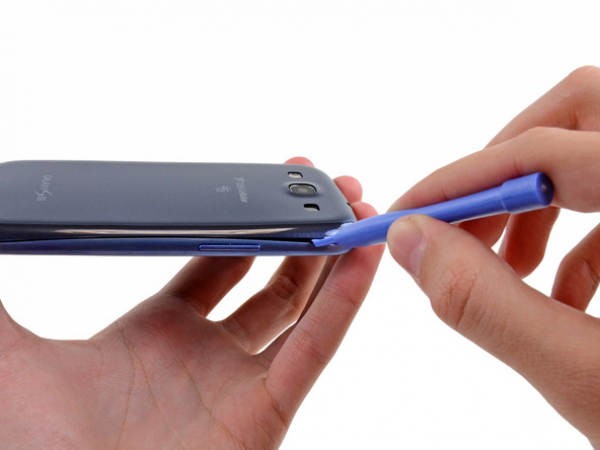 Continue to move the plastic opening tool around the perimeter of the top left corner, gently prying up along the rear case.