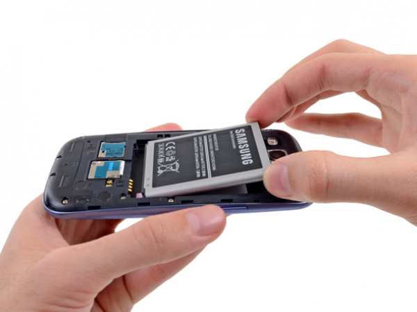 Insert the opening tool into the small notch above the battery and lever it carefully.