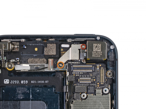 Remove two 1.1 mm Phillips screws attaching the rear-facing camera bracket to the logic board.