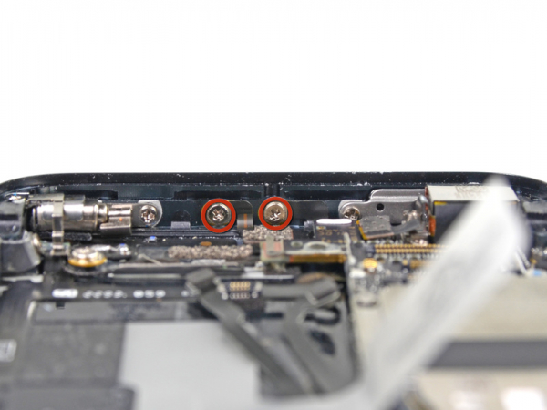 However, there are several ribbon cables still attached at the top of the iPhone, so be very careful not to completely remove the front panel assembly from the rear case.