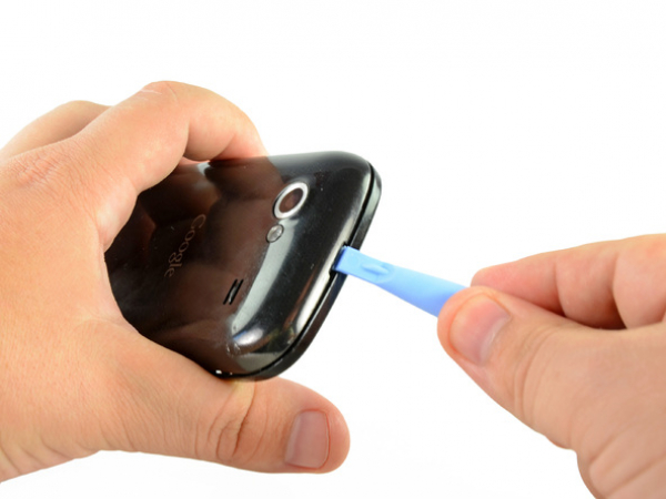 Pry up the rear case around the edges of the Nexus S using your plastic opening tool.