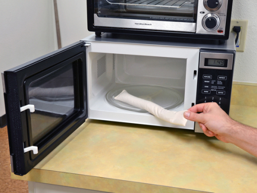 Take the iOpener out of the microwave, holding it carefully by one of its corners.