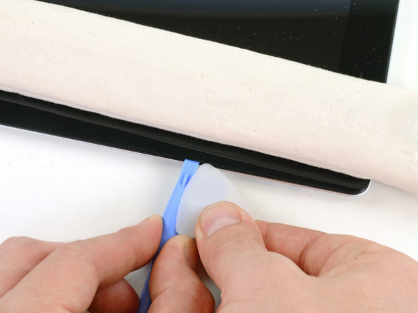 Keep releasing the adhesive at the top edge of the iPad and move the pick around the top left corner.