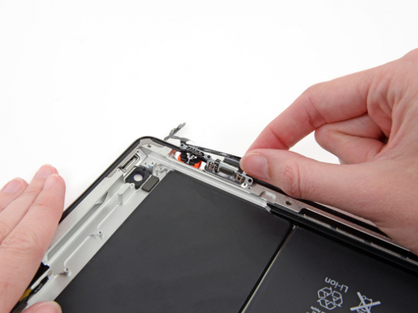 • Lift the power and volume button cable completely and take it out of the iPad.