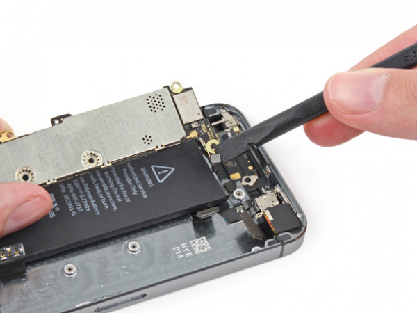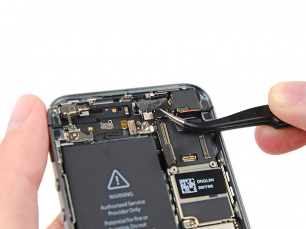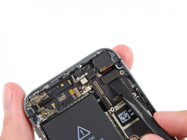 • Lift the Lightning connector cable from its socket on the logic board with a spudger.