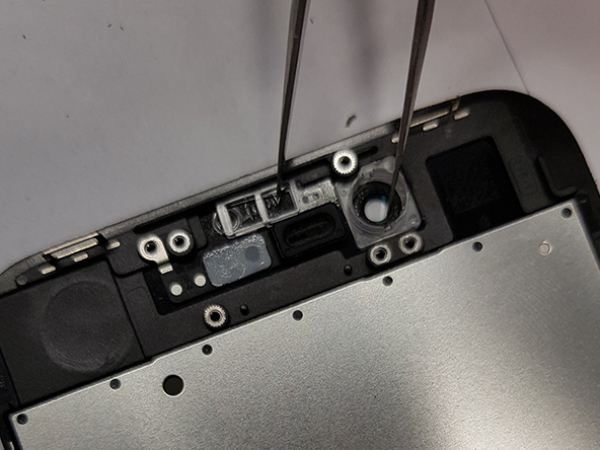 -Remove the screws securing the speaker and sensor. -Gently lift up the metal protection shield and take it off. -Remove earpiece. -Now unscrew four screws witch holds the home button. -Remove metal protection. -Remove three screws from left and three screws from right side of the shield. -Unglue top sensors, home button and the metal shield. -Unglue plastic holders of camera and sensors and place them on new spare. Tip: -Heat up display to make the glue loose.