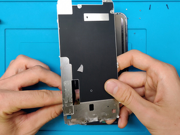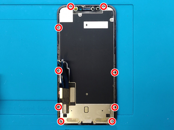 Install the 9 screws you removed from the old LCD and secure the shield to the new LCD.