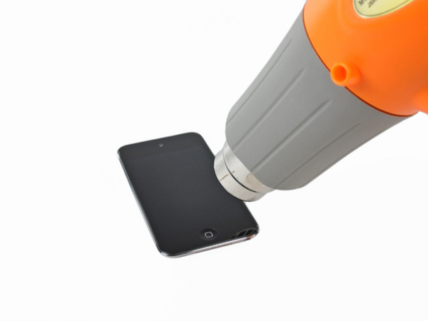 • Set the heat gun on "low" mode and begin heating the lower portion of the iPod Touch near the home button.