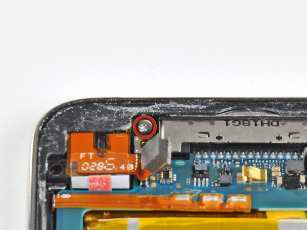 • Remove the 2.6 mm Phillips screw securing the headphone jack assembly to the back case.