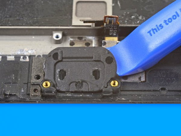 - Insert the spudger's flat end under the loudspeaker and twist it gently until the daughterboard releases itself from the two side clips.