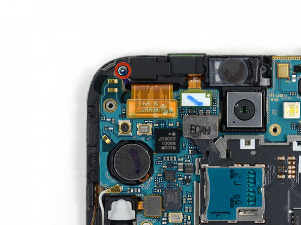 • There is a Phillips screw (3 mm) on the front-facing camera bracket. Remove it.