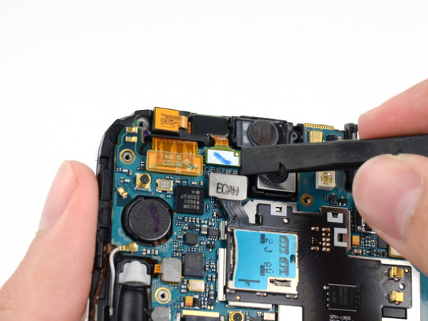 • Press the microSD card (if you have one) deeper into its slot with the flat end of a spudger (or your fingernail) until you hear a click.