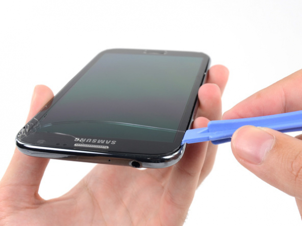 Use a plastic opening tool to lift the battery from the case. You need to insert the tool into the indentation above the battery compartment to do this.