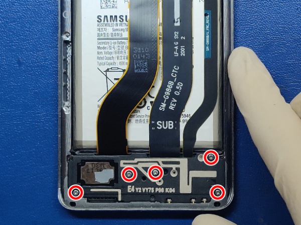 • Remove the five 4.0mm Phillips screws securing the board with the USB-C charging socket.