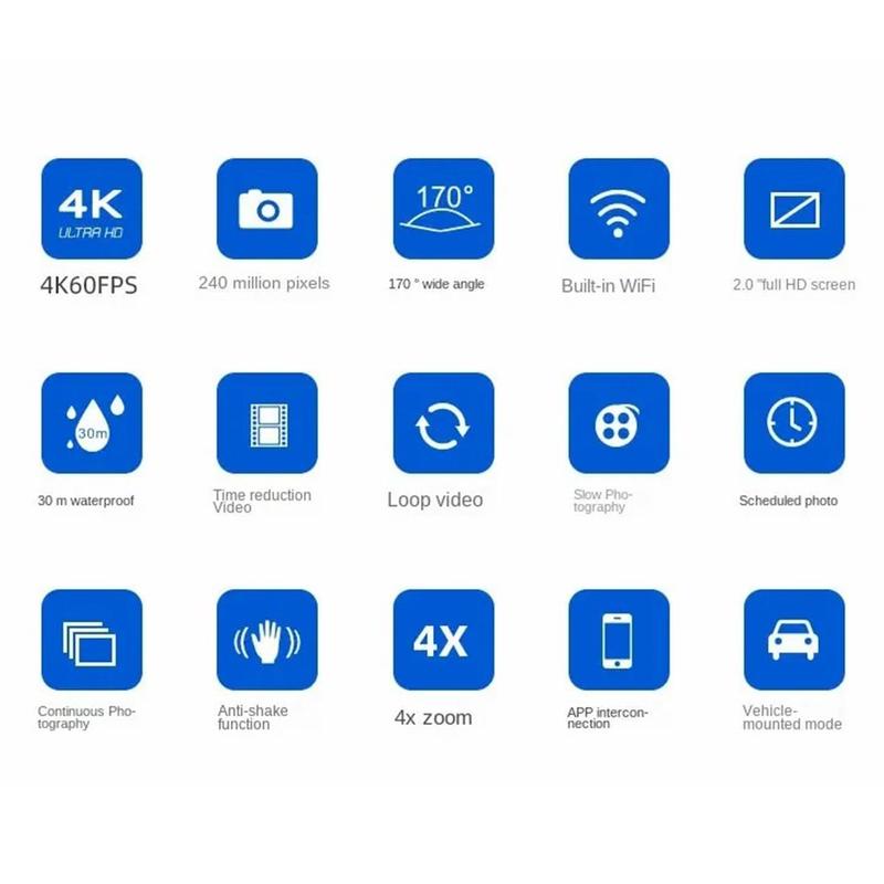 Capture sharp, immersive footage wherever the action takes you with the F300AB-R 4K action camera. Designed for outdoor adventures and everyday recording, it combines a wide 170-degree viewing angle, smooth high-speed video, and a responsive 2-inch HD touch screen. With built-in WiFi and a robust waterproof case rated up to 30 m, it is ready for travel, sports, and underwater exploration straight out of the box.