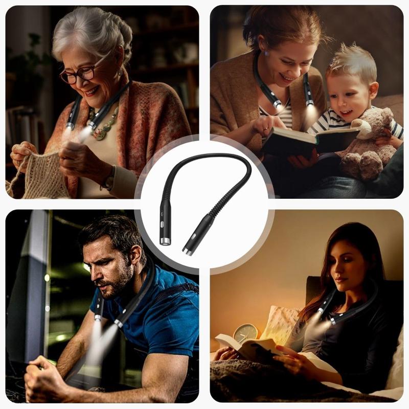 F4 LED Neck Reading Light - Rechargeable, Eye-Friendly, 360° Flexible, Hands-Free