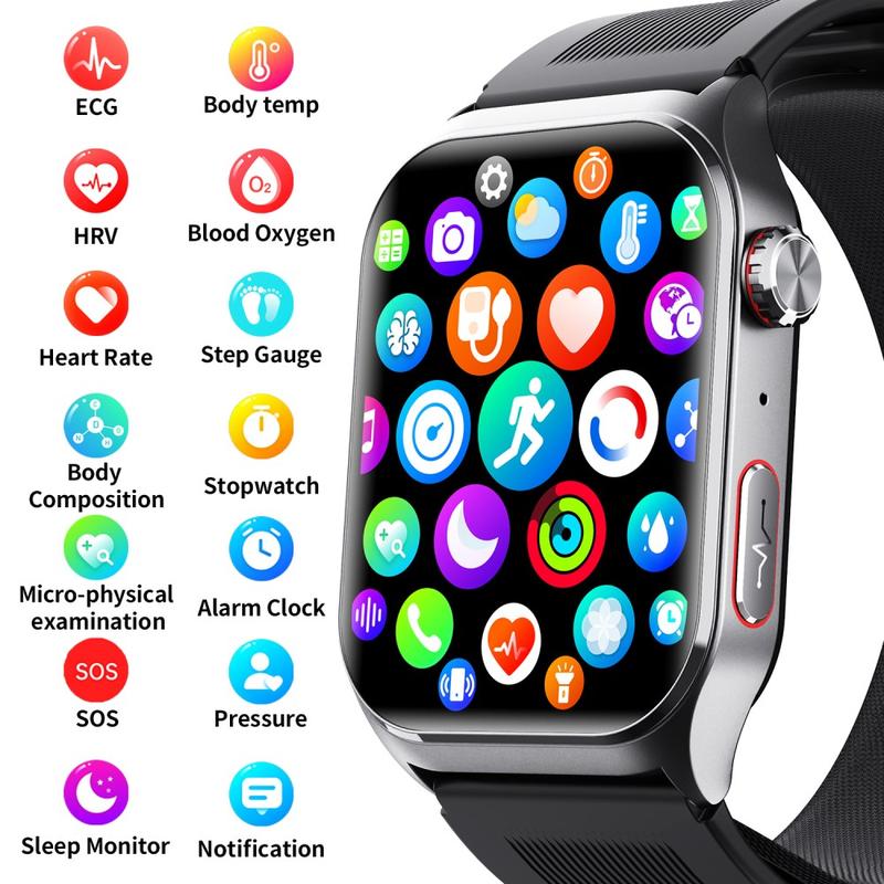 F520 Advanced Smart Watch with Air Pump Blood Pressure, ECG, Heart Rate & Sleep Monitoring - 2.1" IPS Display, SOS Fall Alarm