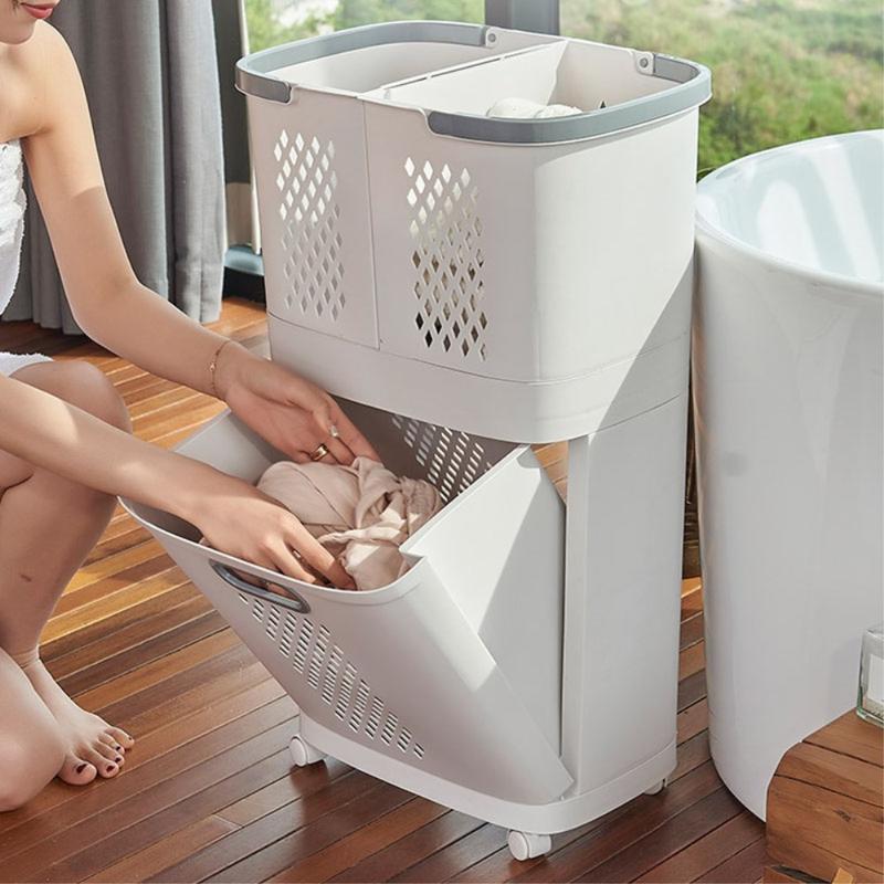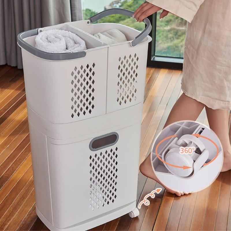 The double-layer design makes it easy to separate and sort clothes, helping streamline laundry days. Sort lights and darks, towels and clothing, or clean and used items — all in one compact unit.