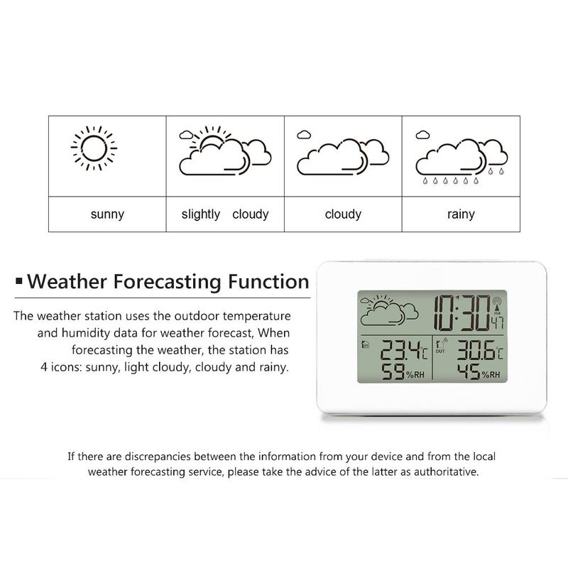 - Digital weather station with indoor/outdoor temperature and humidity readings