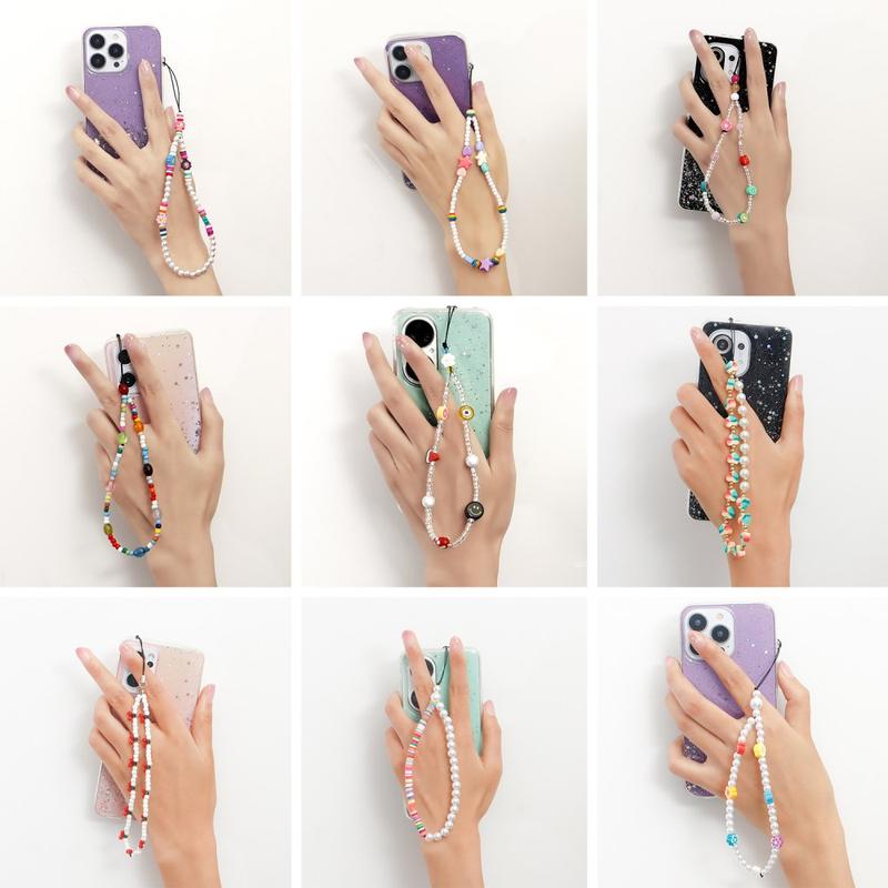Add a playful and stylish detail to your phone with this 22cm pearl beads phone lanyard. Designed as both a decorative charm and a practical wrist strap, it combines faux pearl beads with colourful flat resin beads for a fresh rainbow-inspired look that works well with different phone cases and everyday styles.