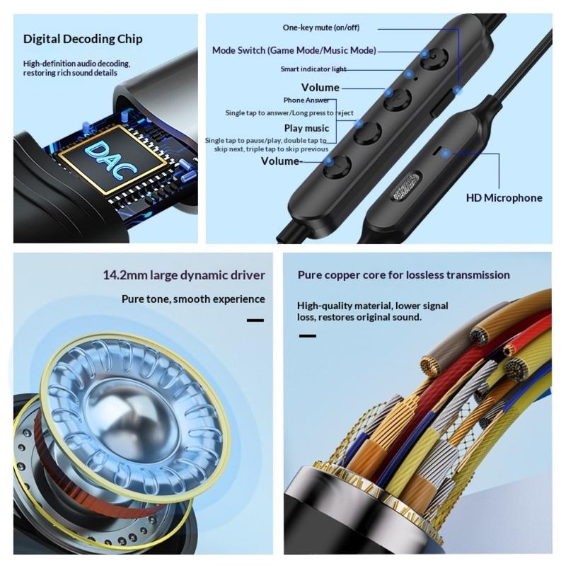 The GC0098 Type-C Wired Earphones are designed for immersive gaming and everyday music listening, combining powerful sound performance with practical features for daily use. Equipped with a large 14.2 mm dynamic driver and a built-in digital decoding chip, they deliver clear Hi-Fi stereo sound with deep bass and detailed highs. With dual gaming and music modes, a stable Type-C connection, and a magnetic design to prevent tangling, these earphones are a reliable choice for smartphones, tablets, and other Type-C devices.