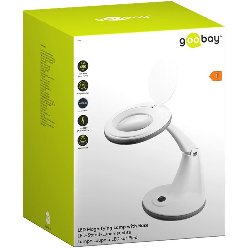 Goobay LED Magnifying Lamp with Base – 6W Ring Light, 100 mm Glass Lens, 1.75x (3 Dioptres), 450 lm, 6500K Cool White, Adjustable Arm (Black)