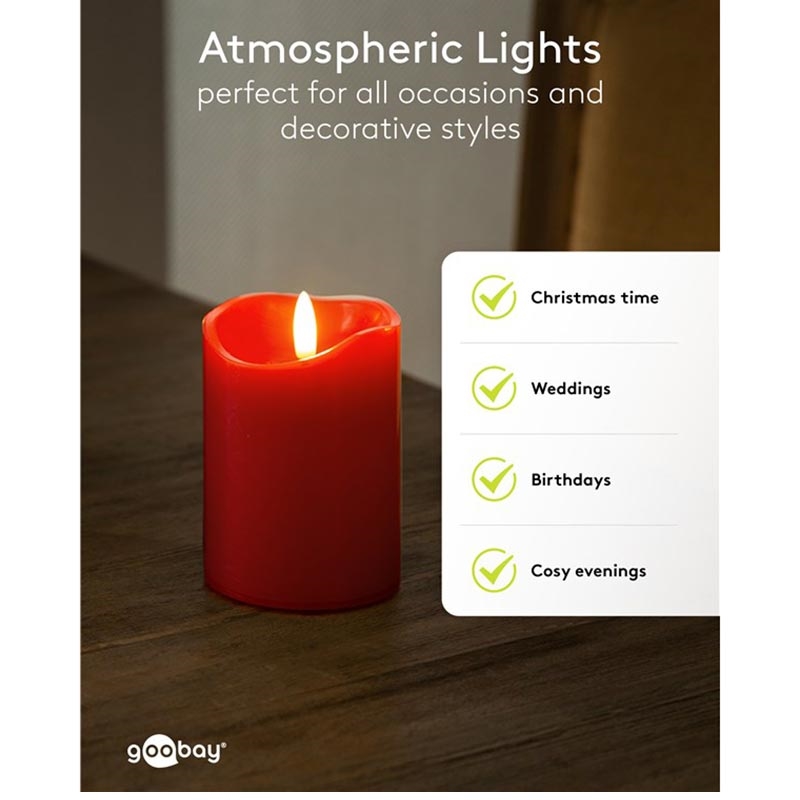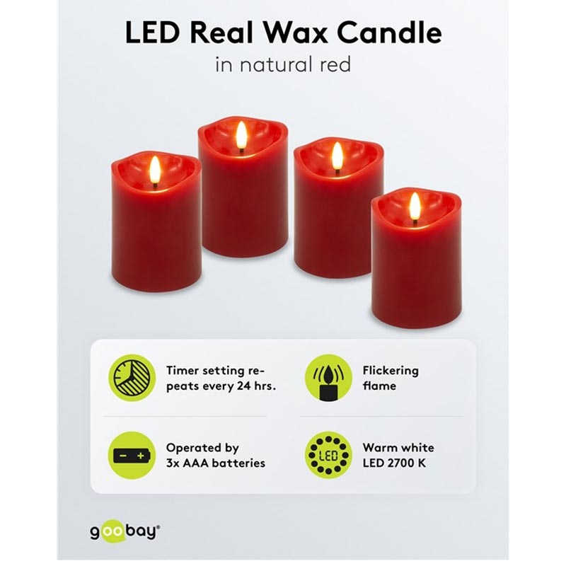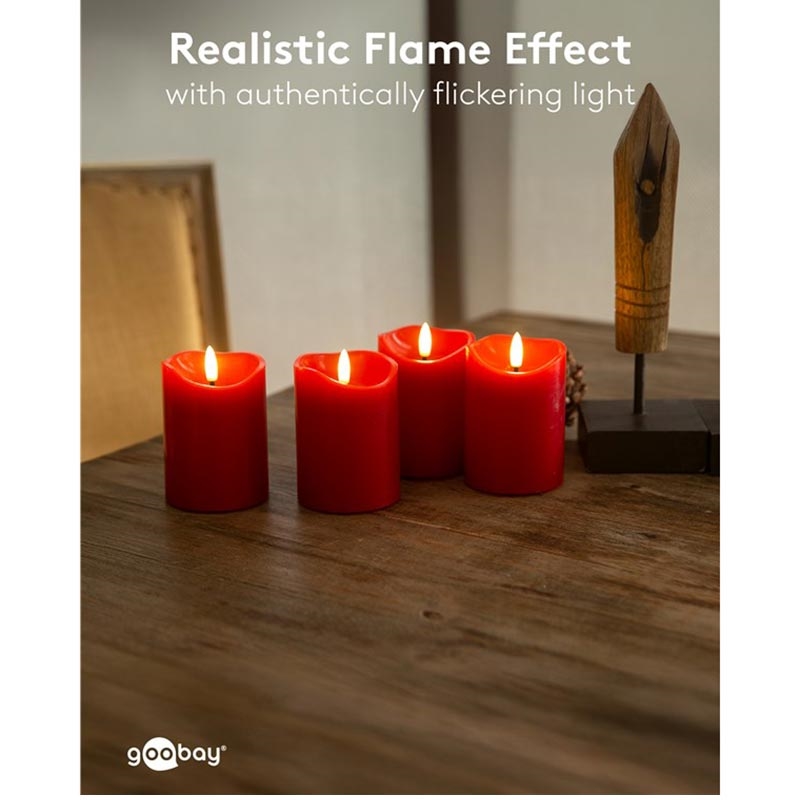 Goobay LED Real Wax Candles with 3D Wick & Timer Function - 4 Pcs. - Red