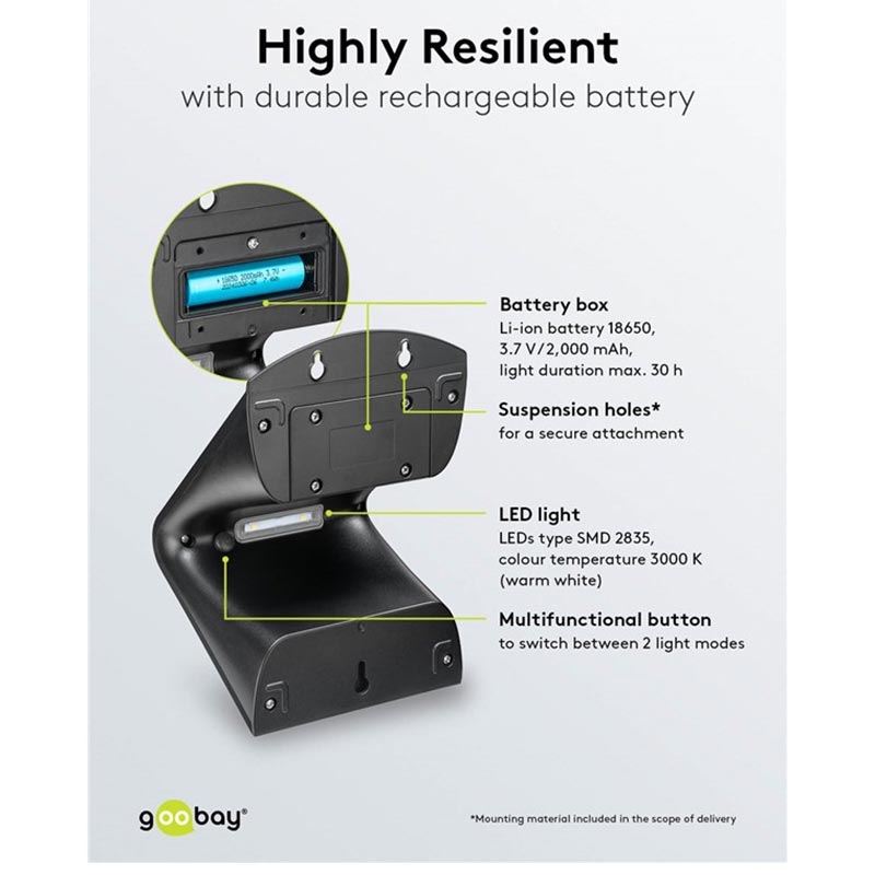 Powered by a 3.7V 2000mAh Li-ion 18650 battery, the light offers up to 30 hours of illumination on a full charge. The replaceable battery extends product lifetime and sustainability.