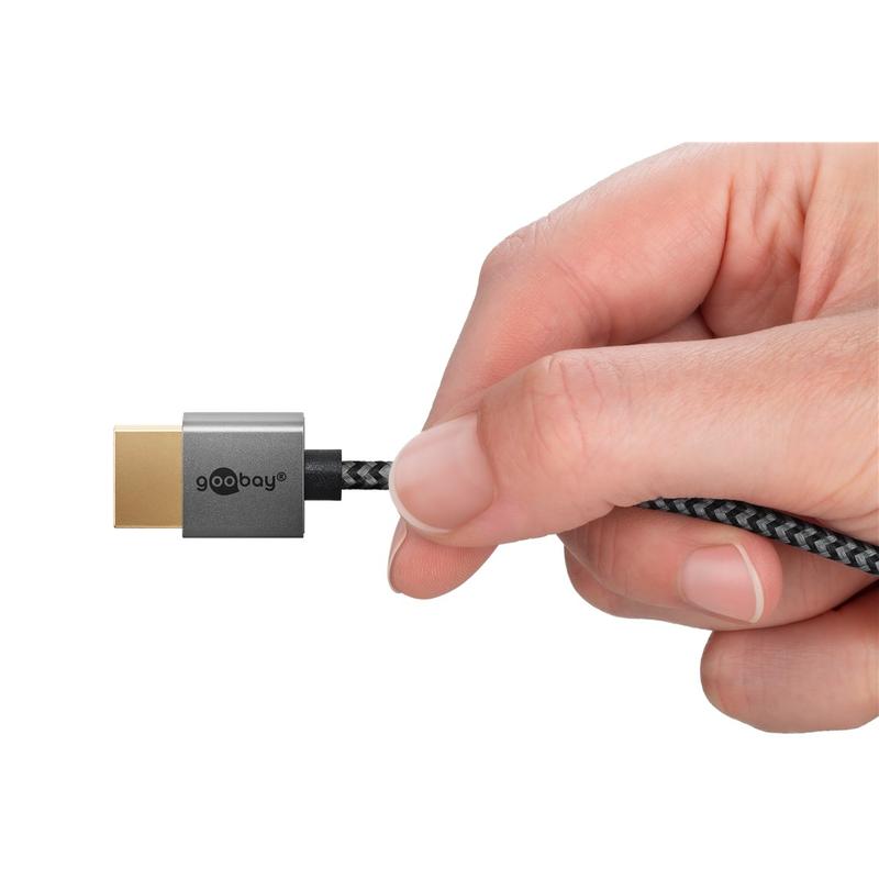 Goobay Plus Slim High Speed HDMI Cable with Ethernet – Ultra-Slim 4K@60Hz HDMI Cable, HDR, ARC/eARC, Metal Connectors