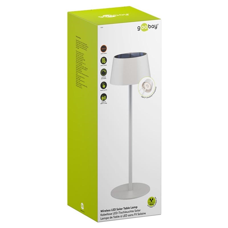 Goobay Wireless LED Solar Table Lamp - Warm White 3000 K, 150 lm, Touch Control, Infinitely Dimmable, Solar + USB-C Charging, IP44