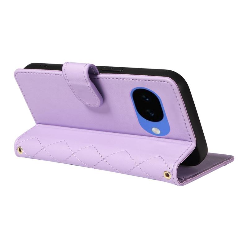Luxury Quilted Wallet Case with Shoulder & Wrist Strap for Google Pixel 10a - Rhombus Pattern Protective Cover
