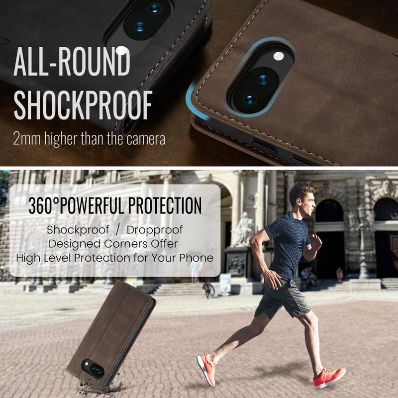 A combination of TPU and polyurethane provides all-around protection for Google Pixel 10a, shielding it from dust, dirt, impacts, scratches, and daily wear. Magnetic attraction keeps the case closed, and clever design enables hands-free usage while watching media content.