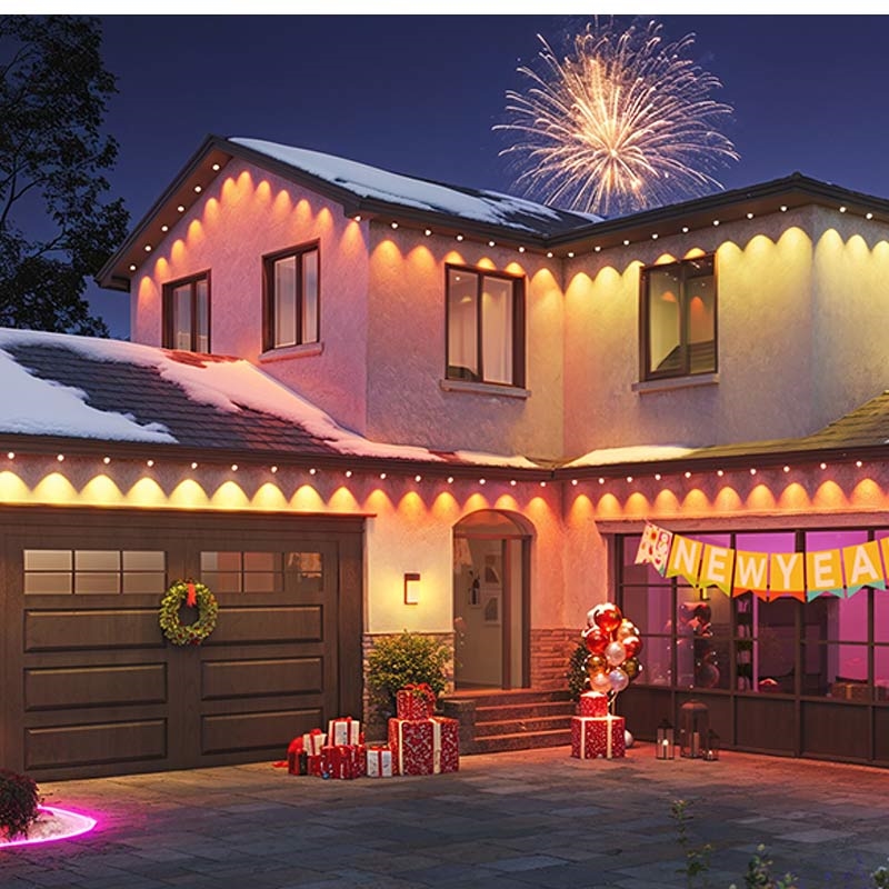 Govee Permanent Outdoor Lights 2 provide a professional-grade lighting upgrade for any home exterior. Unlike temporary string lights, this system delivers powerful brightness, advanced weatherproofing and highly customizable smart controls. The RGBICW technology allows detailed, multi-colour lighting effects that traditional LED strips cannot achieve. With long-term durability, AI light shows and seamless app or voice control, it is an investment that enhances curb appeal and elevates every celebration.