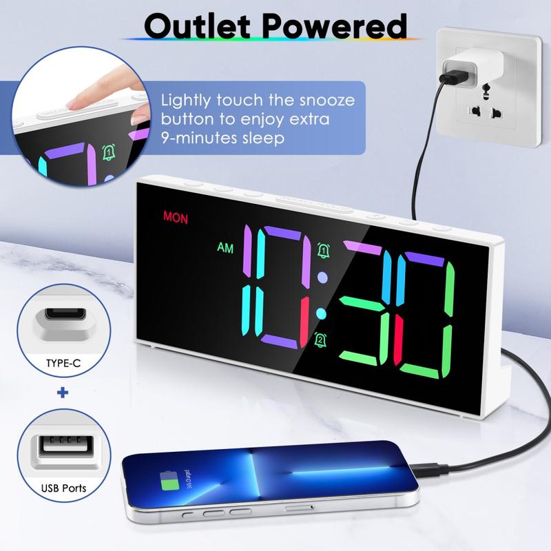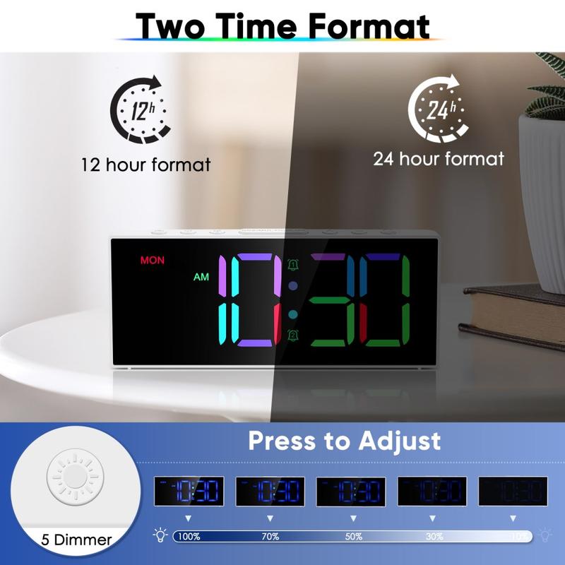 • GS-G11 RGB Digital Alarm Clock with LED Display, Adjustable Brightness & Volume
