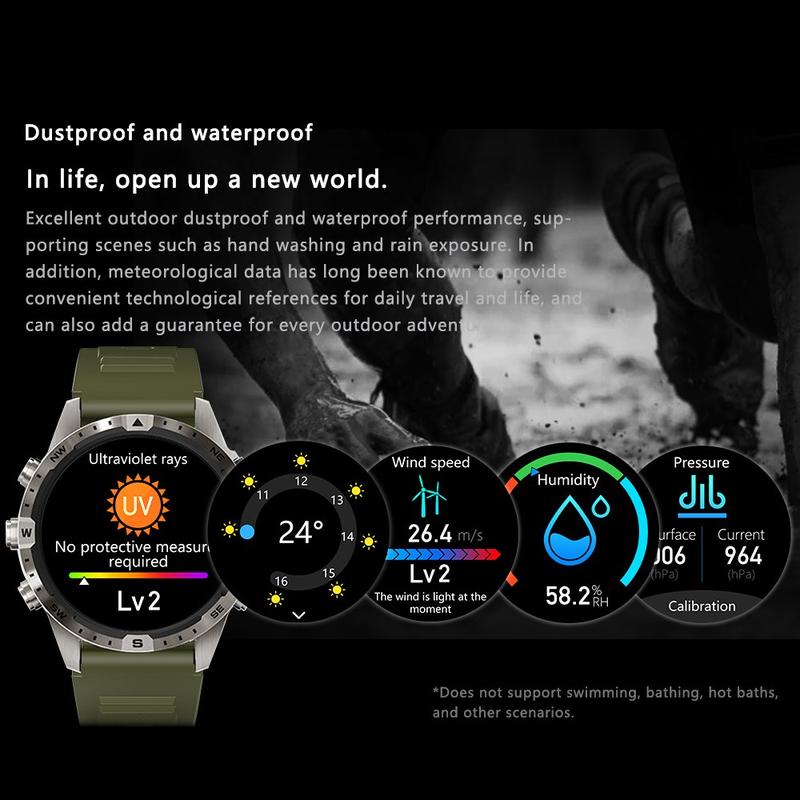 The GT45 outdoor smart watch is engineered for users who demand durability, clarity, and intelligent health tracking in every environment. Its 1.6-inch 400×400 HD LCD display delivers brilliant visibility, protected by the next-generation King Panda Glass — a material known for being up to five times tougher than conventional sodium calcium glass. Whether you’re in the city or out in the countryside, the GT45 provides accurate exercise data, real-time weather indicators, and reliable IP67 waterproof protection to support your active lifestyle.