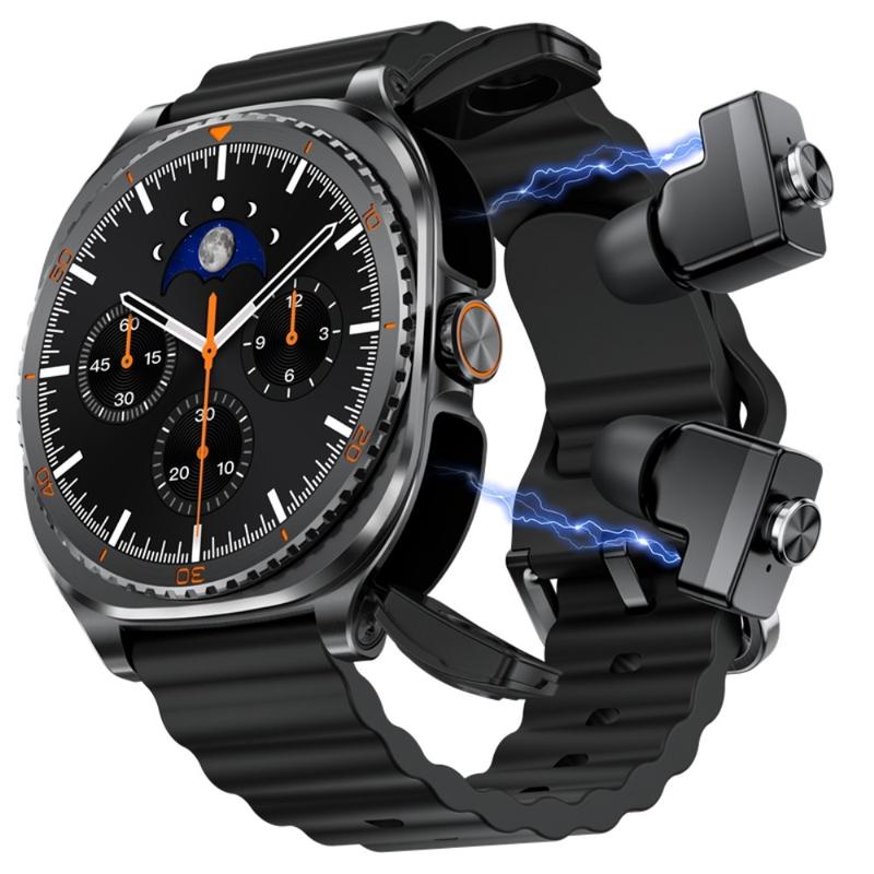 Enjoy the convenience of a smartwatch and wireless earbuds in one smart everyday device with the GT99. This 2-in-1 design combines a full-touch fitness smartwatch with built-in magnetic TWS earbuds, so you can track your activity, check notifications, and listen to music without carrying extra accessories. The earbuds snap neatly into the watch body for storage and charging, making the GT99 a practical choice for commuting, workouts, and daily use.