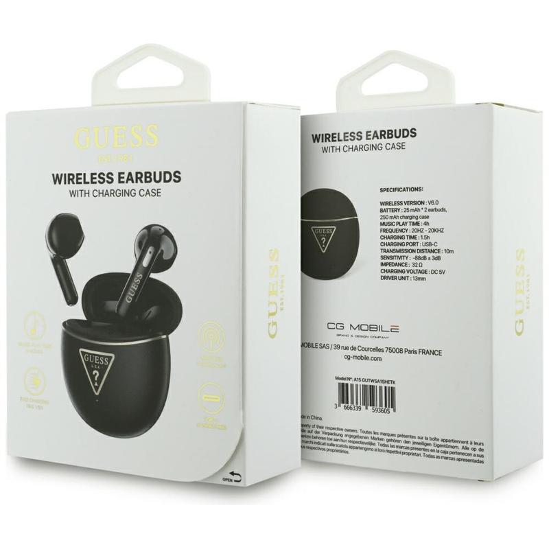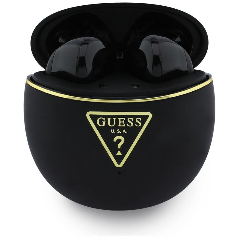 - True wireless in-ear design with a premium Guess Gold Line Triangle look