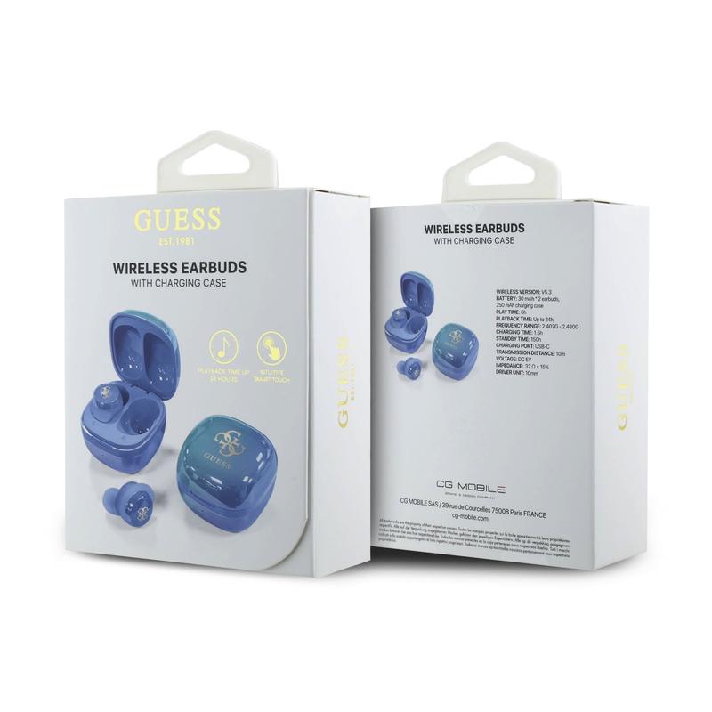 Elevate your audio experience with the Guess TWS Iridescent 4G Printed Logo Bluetooth Headphones. These stylish in-ear headphones combine premium sound quality with a luxurious design, featuring the iconic Guess gold 4G logo on an iridescent finish. With an all-day battery life and cutting-edge Bluetooth connectivity, these headphones offer functionality and elegance for any occasion.