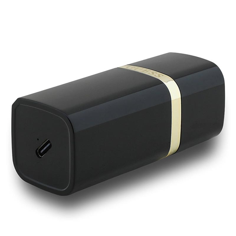 The signature Guess charging case stands out with its stylish lipstick-inspired design, adding a fashionable touch to your everyday accessories. Compact and durable, it keeps your earbuds protected and fully charged wherever you go.