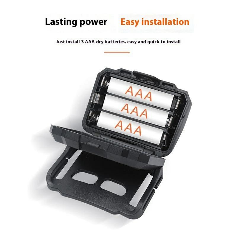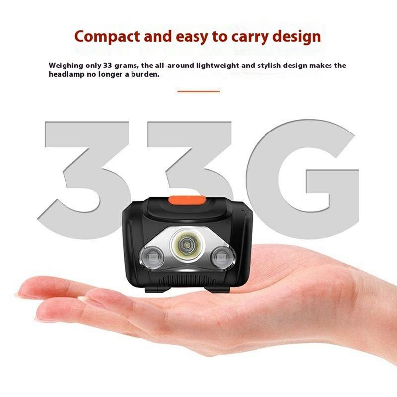 With dimensions of 60 × 45 × 32 mm, the headlamp is small, lightweight and easy to carry. It fits comfortably on the head without causing discomfort, making it suitable for long periods of use during outdoor activities.