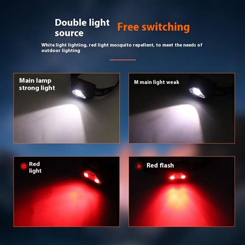 Made from ABS and PC materials, the headlamp is built for durability and resilience. The combination of XPE white LED and 2 × 2835 red LEDs ensures energy-efficient performance with reliable brightness.