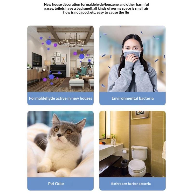 - Improving air quality on a bedside table during sleep and overnight use.